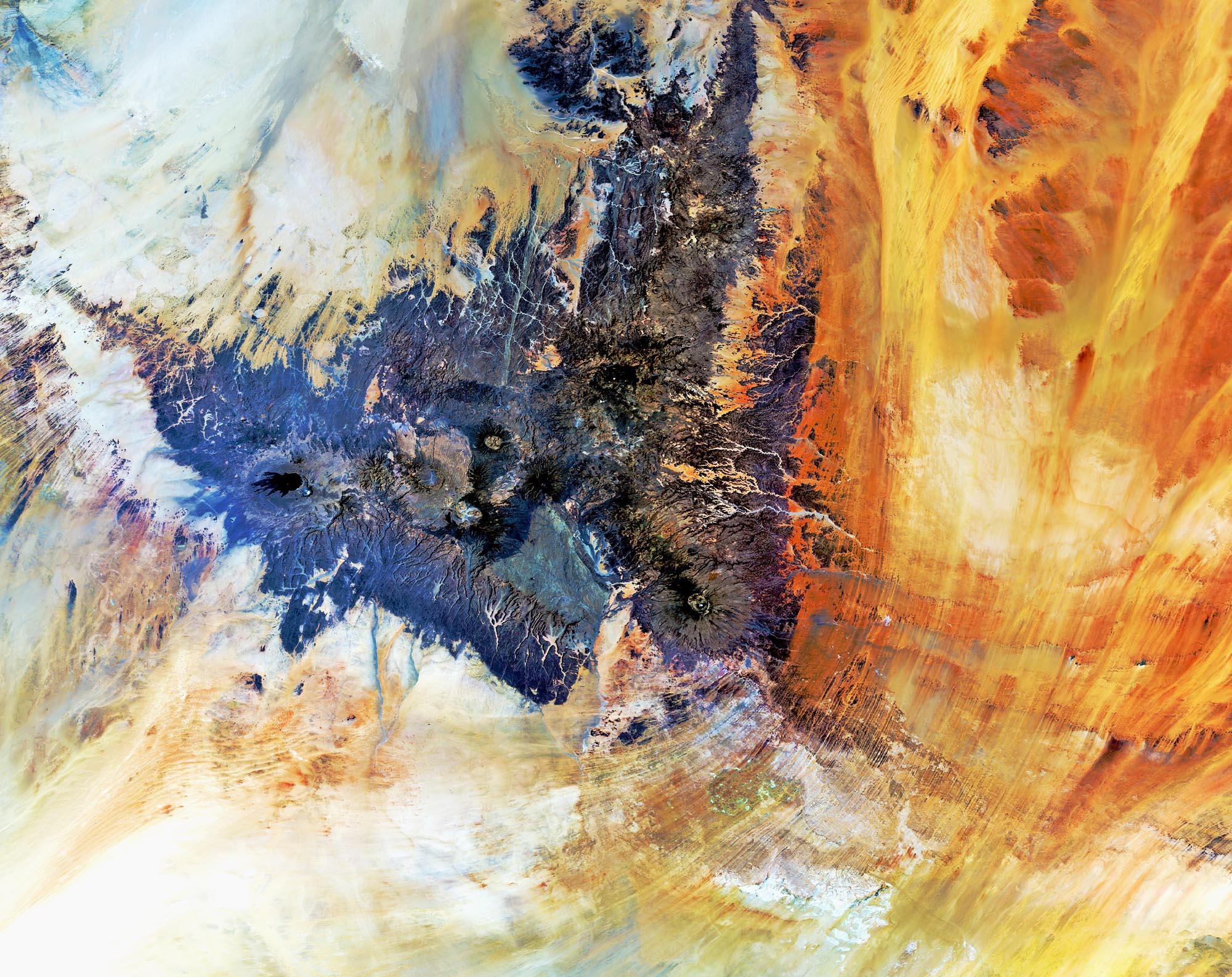At ground level the Sahara desert often seems somewhat monochromatic, but from above that picture changes completely. The Tibesti Miountains, captured above by the European Space Agency’s Envisat, are a mostly inactive volcanic range in the central Sahara, covering some 62,000 square miles of Chad and parts of southern Libya. They’re also really, really pretty when photographed from space.