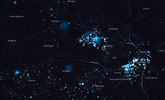 To visualize this (mostly invisible) form of political action, artist-researcher Mauro Martino, sociologist Sasha Goodman, and other members of Northeastern University’s LazerLab team created software to download, process, and geocode data from thousands of files submitted to the Federal Election Commission by political action committees (PACs). Next, they used several visualization tools to create an animation showing the location and timing of campaign contributions throughout 2012. They zeroed in on Boston, because that’s where they live, but the model could be applied anywhere.