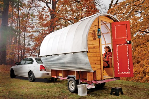 Chambers, 30, and Reinish, 27, now own an immobile home and rarely use the caravan. They’ve added a gas stove, though, and plan to install a composting toilet, a heater, and insulation to provide friends a cheap, cozy place to crash. They also intend to post full construction plans online. “We find a lot of people are interested, but they’re intimidated,” Reinish says. “I can relate to that. I remember thinking, ‘Is this going to fall apart the minute we hit 55 miles an hour?'”