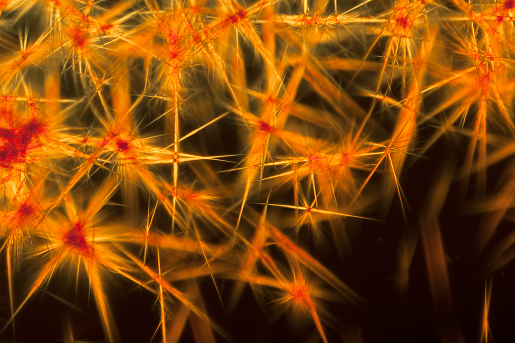 If you truly are what you eat you should definitely eat more Tartrazine Yellow and Allura Red, because man are they ever beautiful. Food colorings like these often make headlines when some study (or rumor of a study) suggests they are slowly killing us (remember back in the ’90s when Yellow 5–that’s Tartrazine–was allegedly making us all sterile?). But here, biochemist and experimental photographer Linden Gledhill has captured them in all their crystalline, microscopic grandeur.