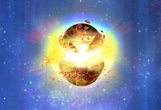 But now, a group of researchers from Germany has come up with a plausible cause: a short-duration gamma ray burst, produced by the collision of two nearby neutron stars. Though immensely powerful (we’re talking two 10-mile wide boulders, each with the mass of our sun), the collision would only have been visible from Earth for about a day, which could explain why the event wasn’t recorded.