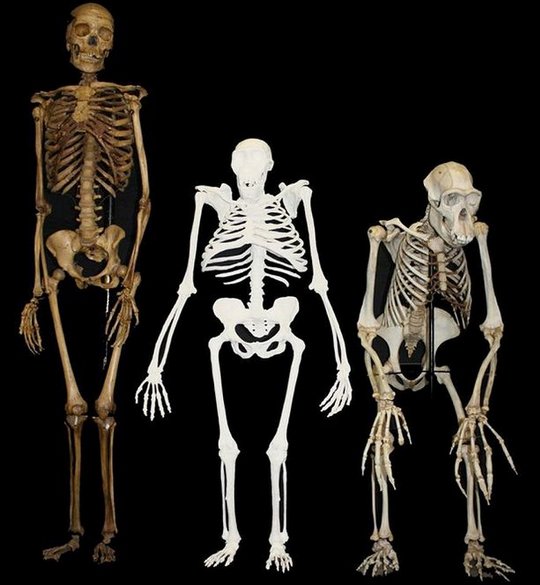 The skeletons belong to a new species of australopithecine, named Australopithecus sediba, discovered for the first time at that cave five years ago. Australopithecines comprise several different species of hominids that roamed Africa from about 4 million to 2 million years ago. They varied in form; some were more chimp-like, some more human like. The new Au. sediba appears to be right in the middle, with chimp-like feet (pigeon-toed, with a small heel) but also walking more upright than apes.