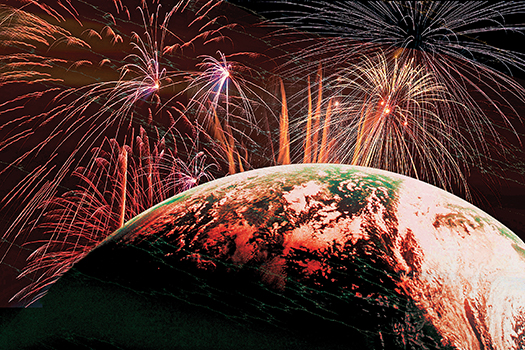 The trouble would come after launch, when the bursting charge releases and ignites the colorant pellets. The reaction that imparts a rocket’s metals and metal salts with enough energy to change pretty colors requires oxygen. Unless your fireworks were specially designed for bursting in space, their colors would quickly fizzle out. “There may be some color in the initial explosion,” says Bossmann, “but it wouldn’t be half as spectacular as what you see on the Fourth of July.”