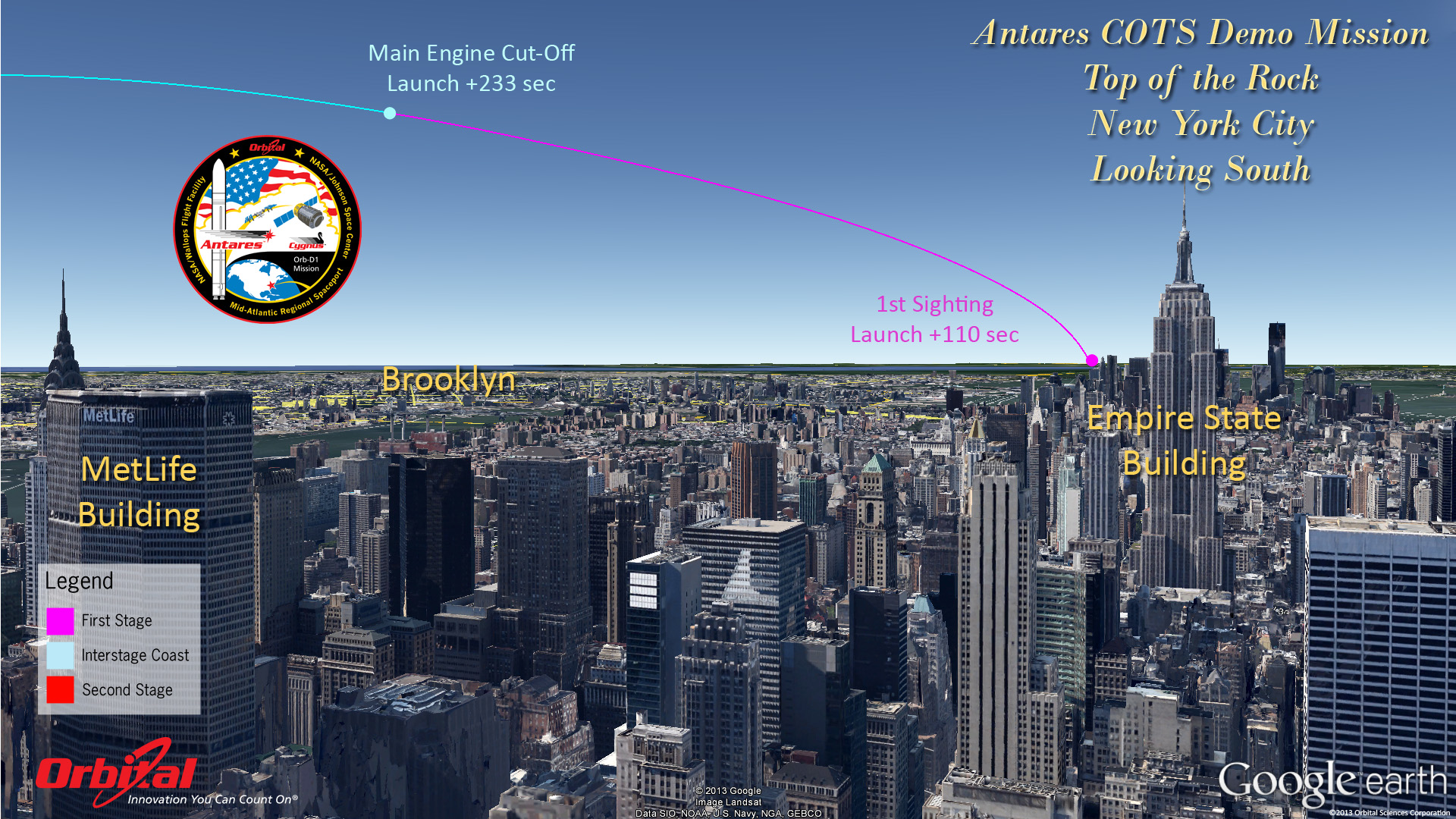 Here’s our guide on “How to See the Antares/Cygnus Launch”—complete with viewing maps and trajectory graphics from a variety of prime viewing locations courtesy of Orbital Sciences, the private company that developed both the Antares rocket and Cygnus spaceship aimed at keeping the ISS fully operational for science research.