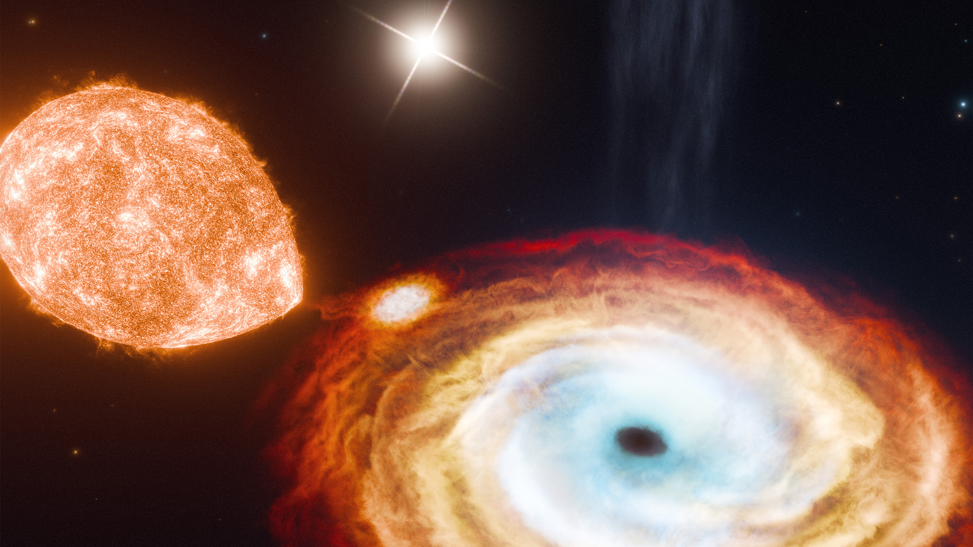 If this newly-observed black hole resulted from a typical supernova, the energy it would have released before it ultimately collapsed would have kicked away any more loosely bound objects orbiting on its outskirts. In theory, that second outer star shouldn’t still be hanging around.