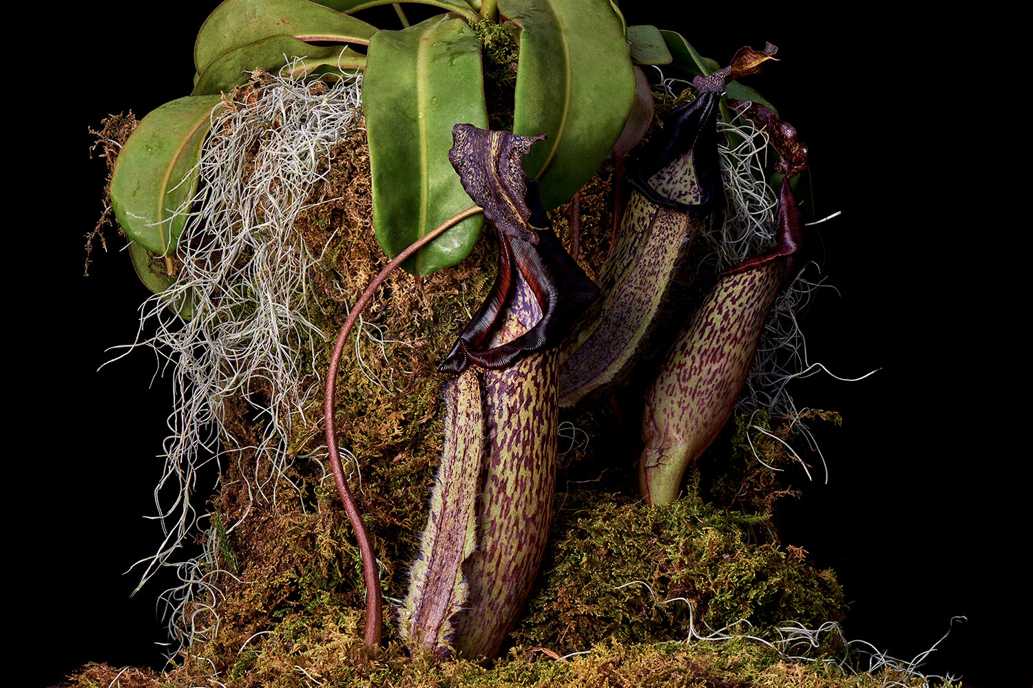 This variety of pitcher plant thrives at high altitudes in southeast Asia. While most of its close relatives climb trees with their grapelike vines, Leibovitch says Veitch’s follows a pattern that looks more like shingles on a house. Frederick William Burbidge, who collected these plants for the British Veitch Nursery in 1877, wrote that they “actually clasp around the tree just as a man would fold his arms around it.” This firm grip allows them to collect bugs and light that they wouldn’t otherwise be able to access.