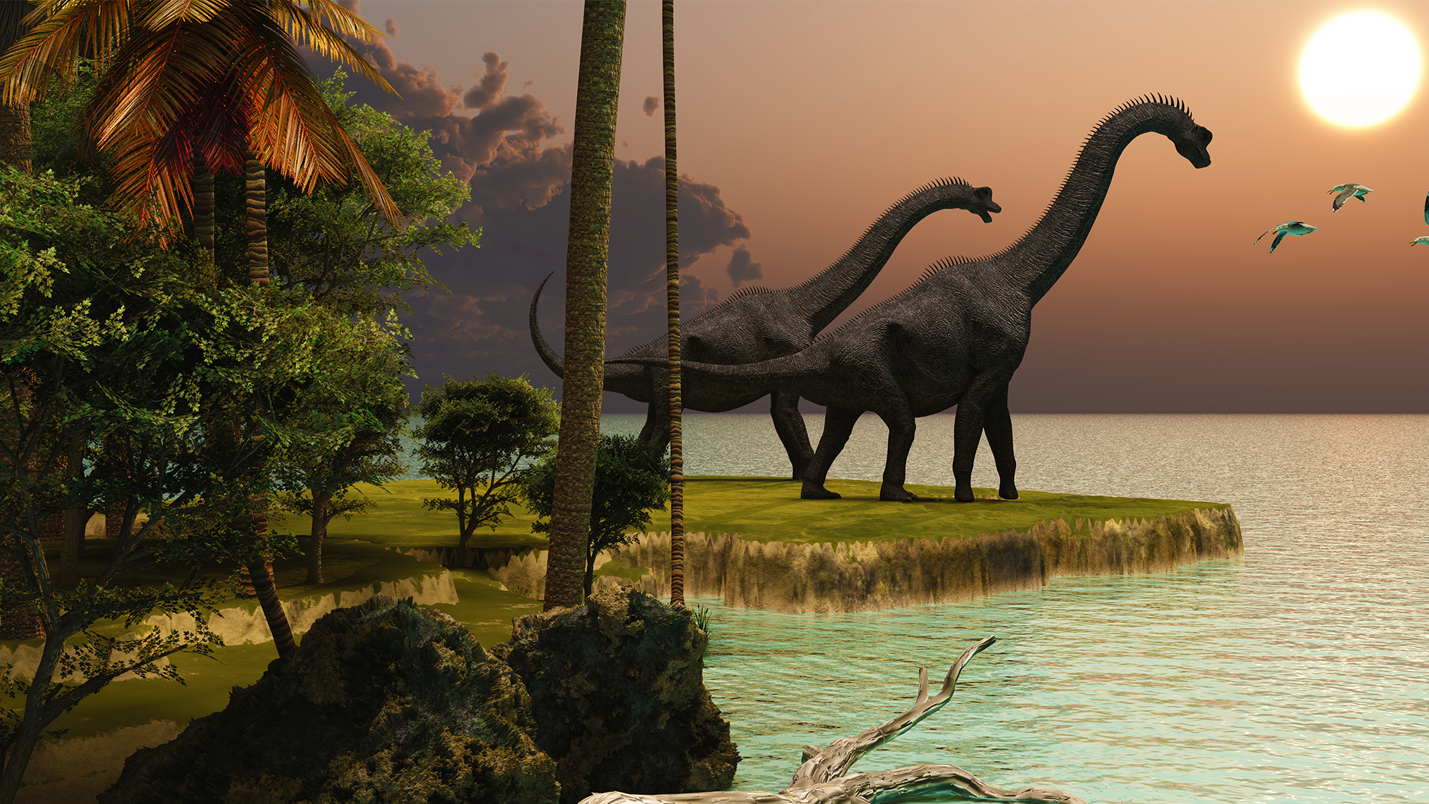 The sauropod-like dinosaurs that would become the giant herbivore species seen during the Jurassic (such as Diplodocus and Brachiosaurus) thrived and expanded to new territories as the Earth warmed. These dinosaurs are known for their massive bodies with long tails and giraffe-like necks paired with and a small head.