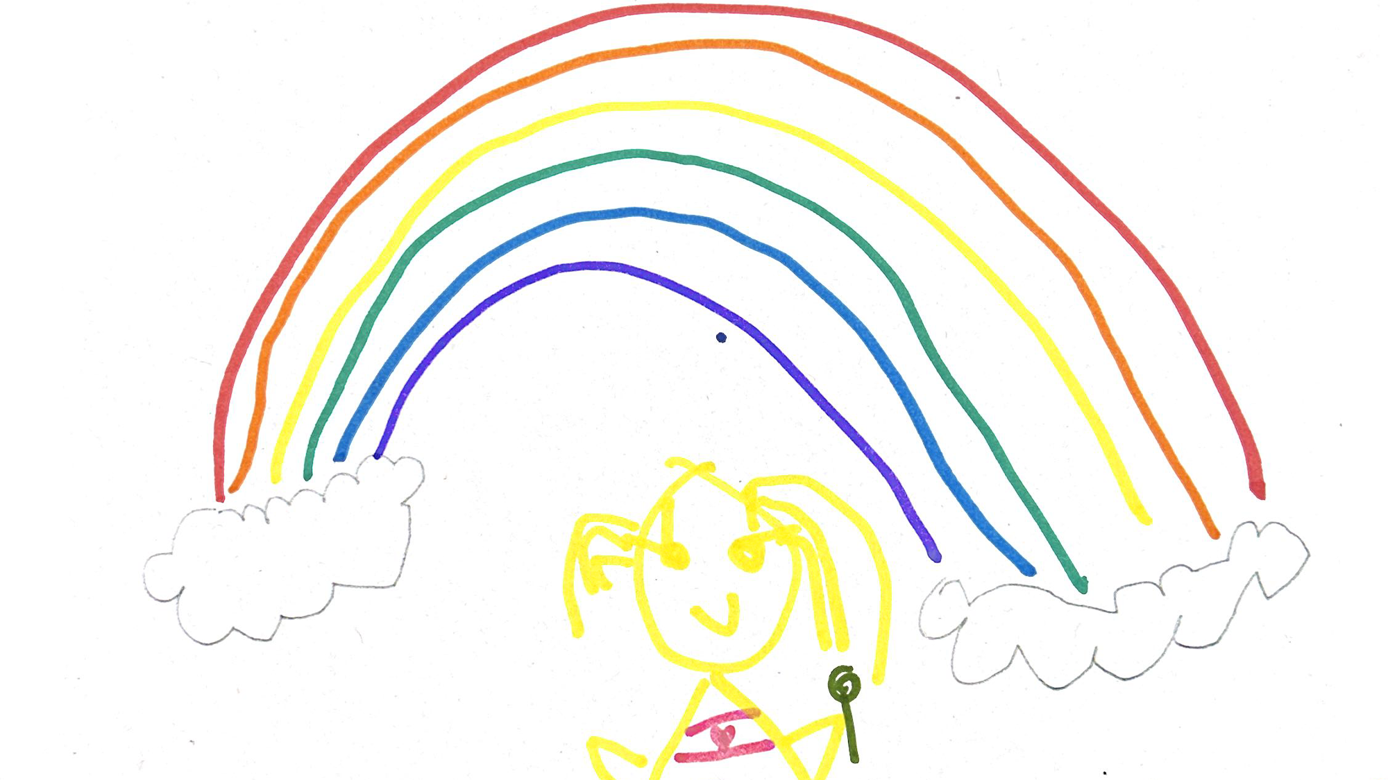 In Hawaii, 5-year-old artist Kira U. depicts the beautiful Aloha State. Its signature aquatic life and rainbows feature prominently in the piece.