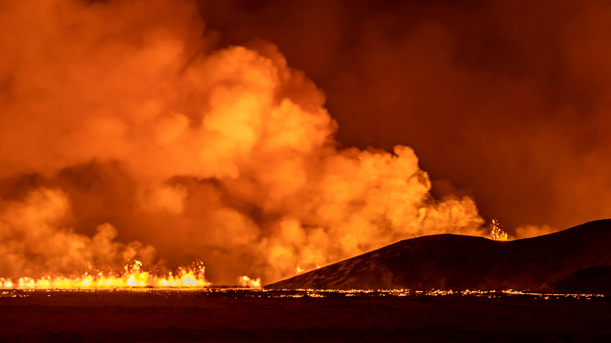 Following weeks of increased seismic activity, a volcano erupted in southwestern Iceland’s Reykjanes Peninsula on December 18. According to Iceland’s meteorological office, the eruption began at about 10:17 p.m. local time, following a series of small earthquakes that began at 9:00 p.m. Between 3,530 and 7,060 cubic feet of lava was emerging per second at the time of the initial eruption, several times more than previous eruptions in this area. The eruption itself could stop at any time or continue for several months.