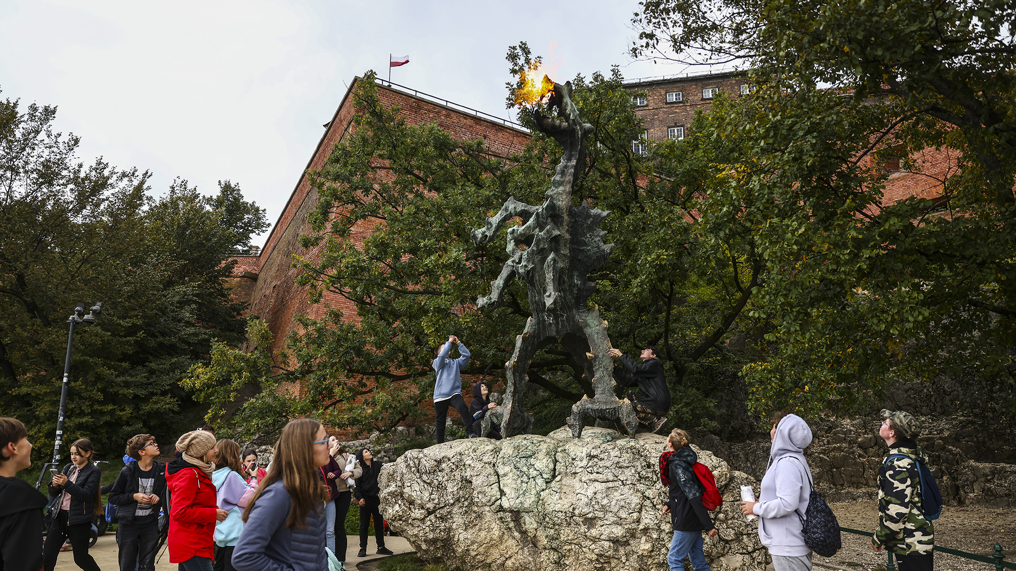 The dragon sculpture at the foot of the Wawal Castle in the southern historic city attracts millions of visitors every year. Flames shoot out from its snout every three to five minutes using a natural gas nozzle in its mouth. It was created by Polish sculptor Bronislaw Chromy during the 1960s and officially installed in 1972.