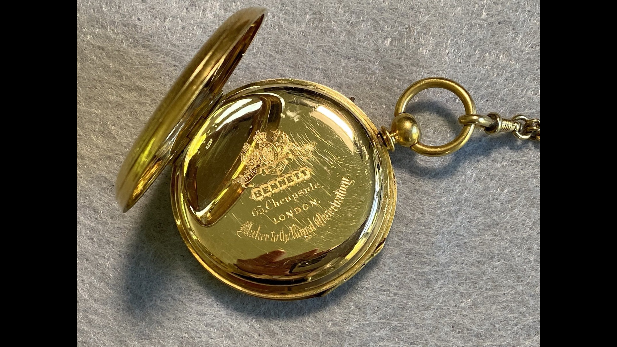 For over 30 years, the artifact remained hidden away in storage. After working to restore it, the watch’s finders reached out to Van Heest to help identify its owner. Luckily, the timepiece offered a solid lead—the initials “H.I.” engraved on its watch fob. Additional research indicated Herbert Ingram’s descendents still lived in England. After reaching out to them and confirming the watch’s provenance, Van Heest learned his hometown’s museum was coincidentally in the process of building an exhibit dedicated to him.