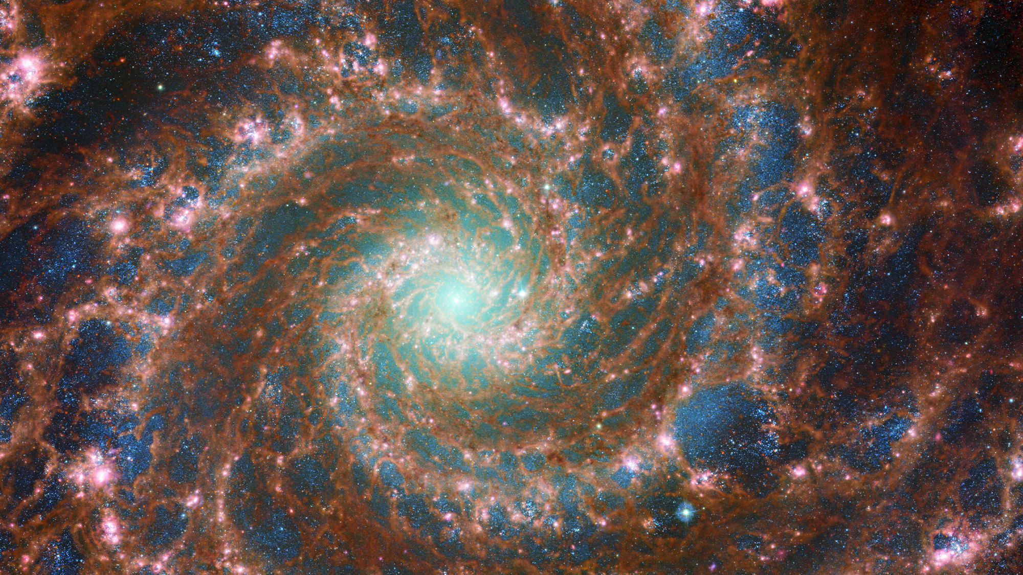 This sonification features M74, which is a spiral galaxy like our Milky Way. It is about 3.2 million light-years away from earth in the constellation Pisces. Spiral galaxies like these typically have a rotating disc with spiral ‘arms’ that curve out from a dense central region. This sonification combines data taken with NASA’s James Webb and Hubble Space Telescopes and X-rays from Chandra.