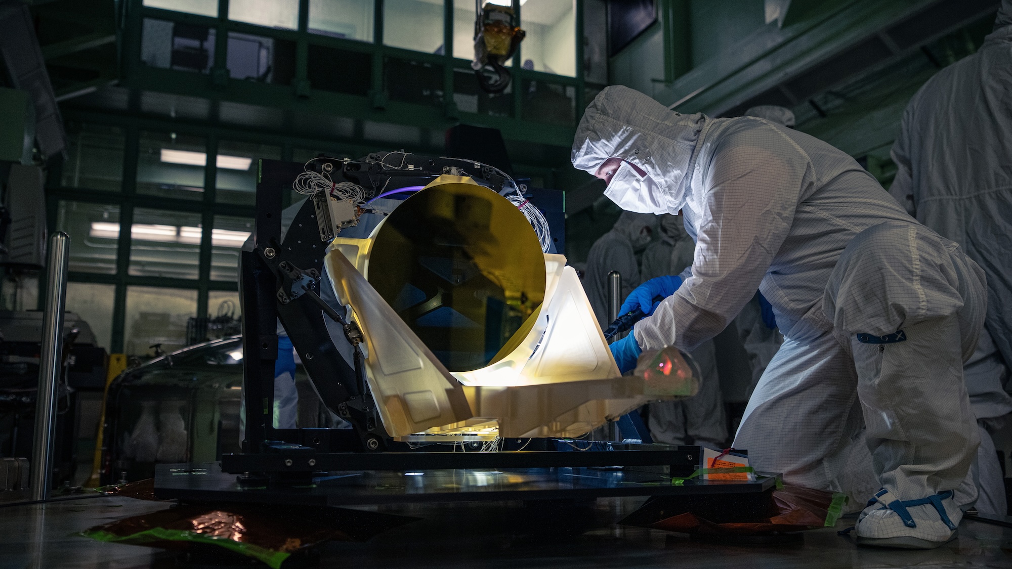 While each spacecraft will ultimately contain a solid, gold-platinum cube to help reflect laser beams traveling distances wider than the Sun, NASA commissioned its Engineering Development Unit Telescope on a smaller budget. The prototype is constructed entirely from an amber-hued glass-ceramic composite known as Zerodur and sourced from Germany. Meanwhile, the equipment telescope’s primary mirror is still coated in gold to help reflect the lasers while reducing heat loss—according to NASA, the telescope needs to counter deep space’s harsh environment, since it operates best when at room temperature.