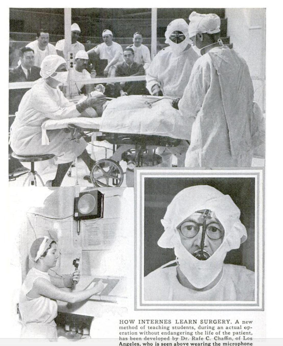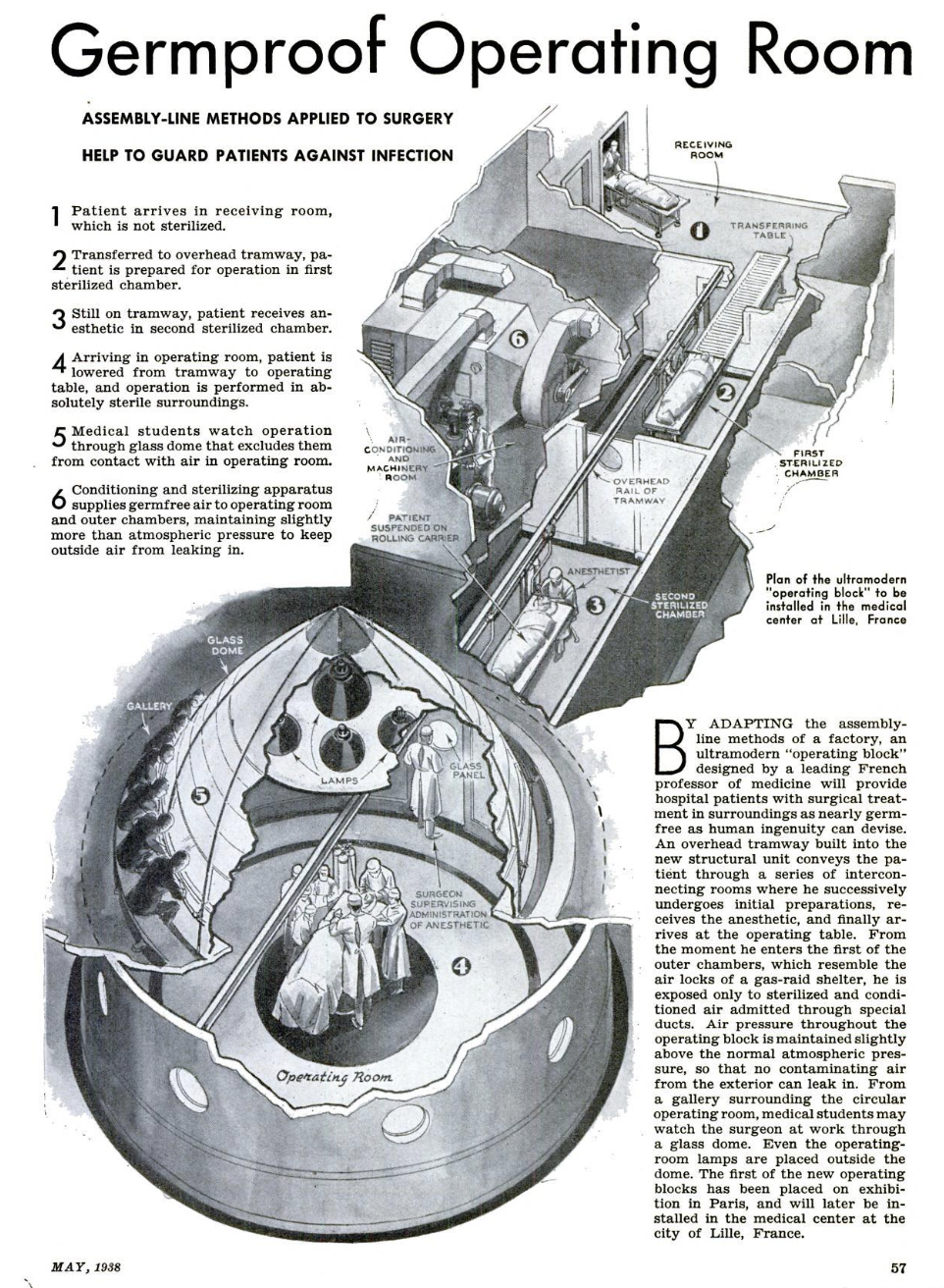By 1933, operating rooms had become sterile rooms, surgeons wore scrubs, and audience members were kept behind glass walls to prevent germ exposure. But…