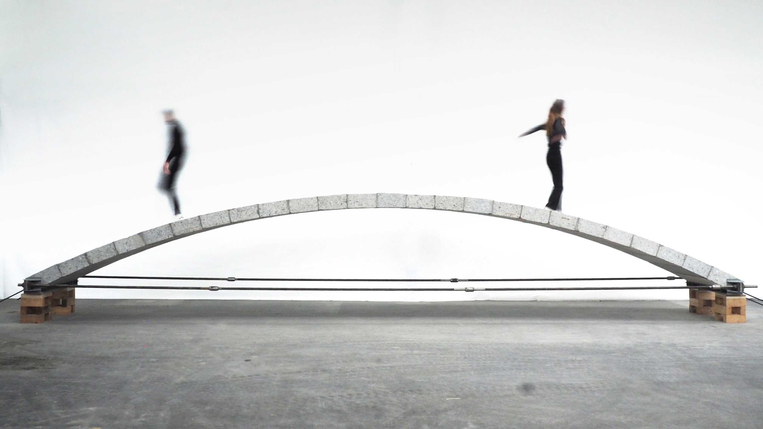 Today, architects and builders aren’t typically used to ringing up demolition companies in search of material. But that’s what the bridge-builders did. Within two weeks, they had found a renovation site that would provide concrete blocks to their liking: 20 centimeters (7.9 inches) thick, complete with holes that allow the blocks to be reinforced and strengthened with hefty post-tensioning cables.