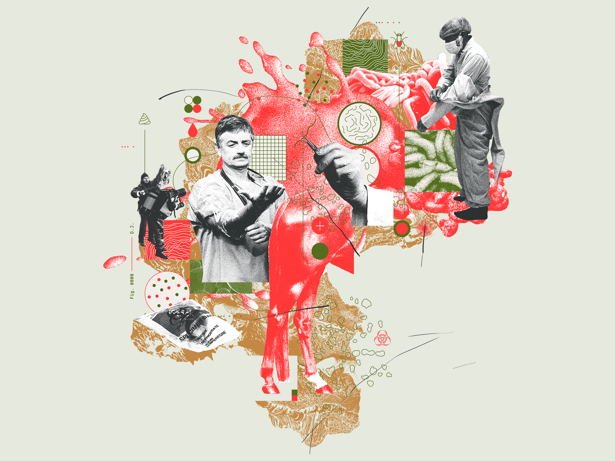 THERE’S SOMETHING DEEPLY respectable about messy work. Someone who slams their coffee and starts their day with decomposition lives a hero’s journey. One second our intrepid adventurer is eating a granola bar in the car, and the next they are face-to-face with something so gnarly that they can’t talk about work over dinner. But without them, the world would be a more dangerous—and more disgusting—place for the rest of us. Diving through feces to retrieve corpses, scooping armfuls of fish slime, and cooking human organs into sanitized mush subjects stomachs, noses, and souls to a full-on sensory onslaught. To those who take on some of the filthiest jobs in science: We salute you.