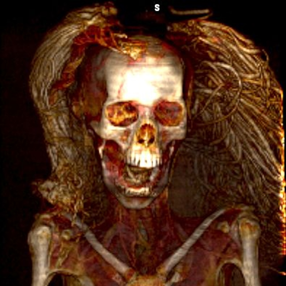Radiology professor Sahar Saleem and colleagues at Cairo University’s Kasr Al Ainy Hospital have published a new study in the journal Frontiers in Medicine that provides never-before-seen, detailed looks at the mummy along with reliable theories about her health near the end of her life. Thanks to CT imaging, infrared spectroscopy, scanning electron microscopy, and other equipment, Saheer’s team theorize the open mouth may not be due to a shoddy burial, but rather the result of a cadaveric spasm in her final moments.