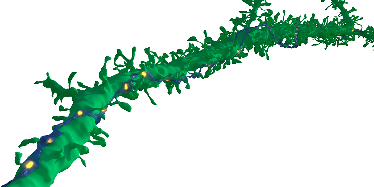 Already, Lichtman and his many co-researchers have made some interesting observations. Amid the ~150 million synapses they mapped, they found a rare type of particularly strong connection. In the vast majority (96.5%) of cases, axons–the outgoing transmission line of neurons– formed one connection with a target cell. Some (about 3%) made 2 connections. But less than .01% forged more than four synapses, including some axons and target cells that were connected at over 50 points.