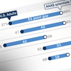 A new set of surveys of scientists and the public finds the two groups have widely different views about scientific issues. Conducted by the Pew Research Center in collaboration with the American Association for the Advancement of Science, the survey found scientists tended to have a more positive opinion of many technologies than the general public.