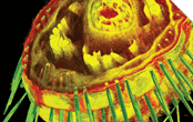 Meanwhile, at the Biological Imaging Center at the Beckman Institute at Caltech in Pasadena, Andy Ewald is trying to trace how cells move within frog embryos as they develop. But the embryos are opaque, so he can’t see inside them. Ewald gets around this problem by tagging specific cells with fluorescent dye, then asking Resolution to make images of the embryos at various stages of development — from the initial ball of cells to a fetus with recognizable organs. The data enable him to see inside the embryos and determine which bodily organs his tagged cells eventually turn into.