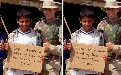 Boudreaux has taken the incident in stride. “My first reaction, I thought it was funny,” he said in a telephone interview. “I didn´t have a second reaction until they called and said, â€You´re getting investigated.´ ” He insists that he never gave the Iraqi boy a sign with any words but “Welcome Marines,” but he has no way to prove it. Neither he nor anyone he knows still possesses a version of the image the way he says he created it, and no amount of Internet searching has turned it up. All that exists are the low-quality clones on the Web. Farid´s software can´t assess Boudreaux´s claim because the existing images are too compressed for his algorithms. And even Farid´s trained eye can´t tell if either of the two existing images-the “good” sign or the “bad” one-are real or if, as Boudreaux claims, both are fakes.