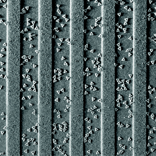 DNA origami—in which a long strand of DNA is folded using shorter “staple” strands—is difficult to control, usually occurring in solution and bending to its own whims rather than into the highly ordered patterns needed to build circuitry at the nano level. Using electron-beam lithography, the researchers created special binding sites on silicon and other chip-making materials. These binding sites are patterned in a way that is conducive to micro-circuitry, creating a lattice on which the DNA molecules self-assemble in a pre-determined way. The DNA nano-structures in turn serve as a scaffold upon which other nano-structures—carbon nanotubes, nanowires, etc.—can be built at scales significantly smaller than those achievable with conventional machining methods.