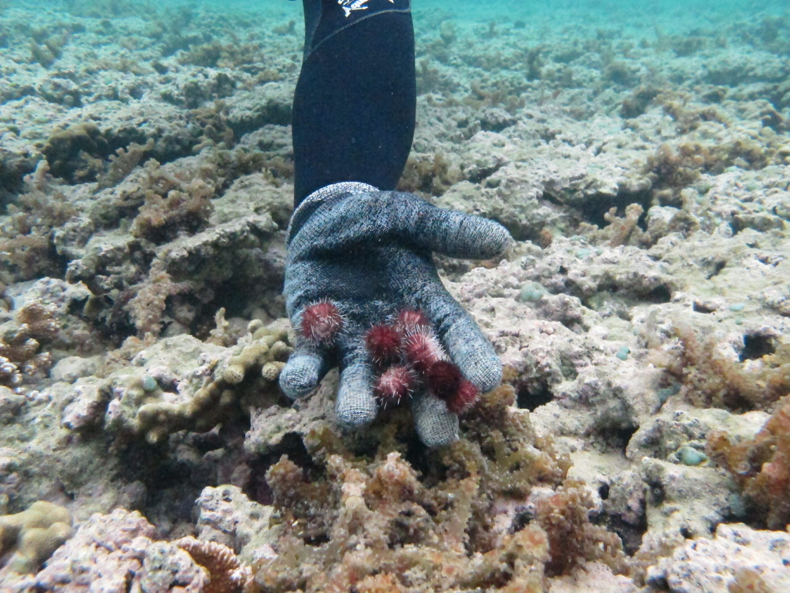 In 2008, NOAA and partner organizations announced a plan—using a combo of manual removal of the algae and, yes, tons of our spiny friends. First, divers cruised across the reefs, ripping out the algae and sucking it away with an underwater vacuum. Then, they brought in trays of cherry-tomato-sized young sea urchins. The animals, native to Hawai’i, are known to eat at least five species of invasive algae. And their small size lets them get into cracks and crevices in the corals, where they feed on hard-to-reach seaweed.