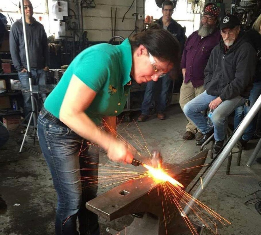 When it comes to blacksmithing, Horn prefers creating functional art to knickknacks or decorations. She’s forged handrails, gates, table legs, table lamps, fire tools, vessels of all kinds, stems for wine glasses, and more.