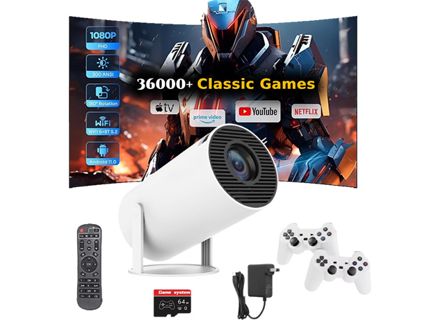 2-in-1 Ultimate 1080p HD Gaming Projector with Android 11, 2 Controllers & 36,000+ Games – $99.99