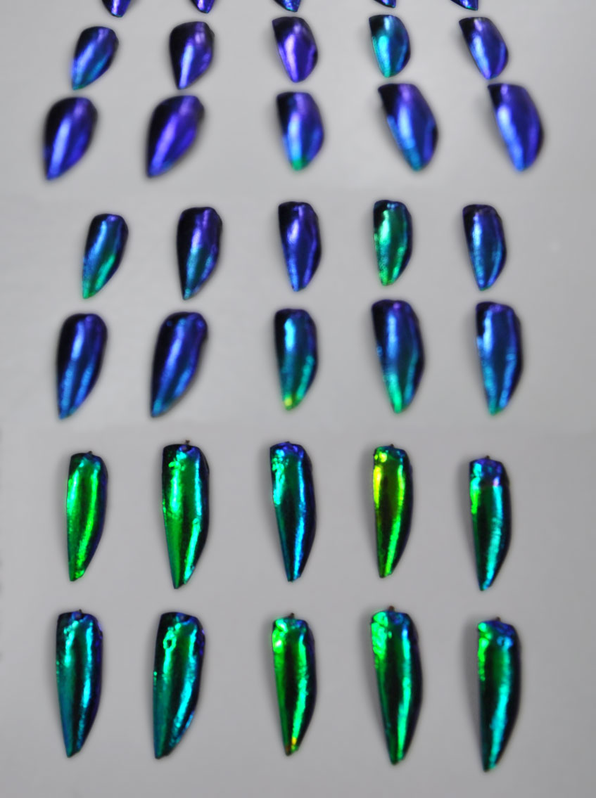 A study published Thursday in Current Biology led by Kjernsmo finally put some proof behind Thayer’s theory. For her work, she used Asian jewel beetles, a metallic-green beetle often used in jewelry that can be found in Southern Asian countries like Thailand. The researchers placed real, iridescent wing cases of these beetles in a natural woodland setting to see if animals would notice them compared to a control group of plain colored wing cases (which were just the jewel beetle cases covered in nail polish).