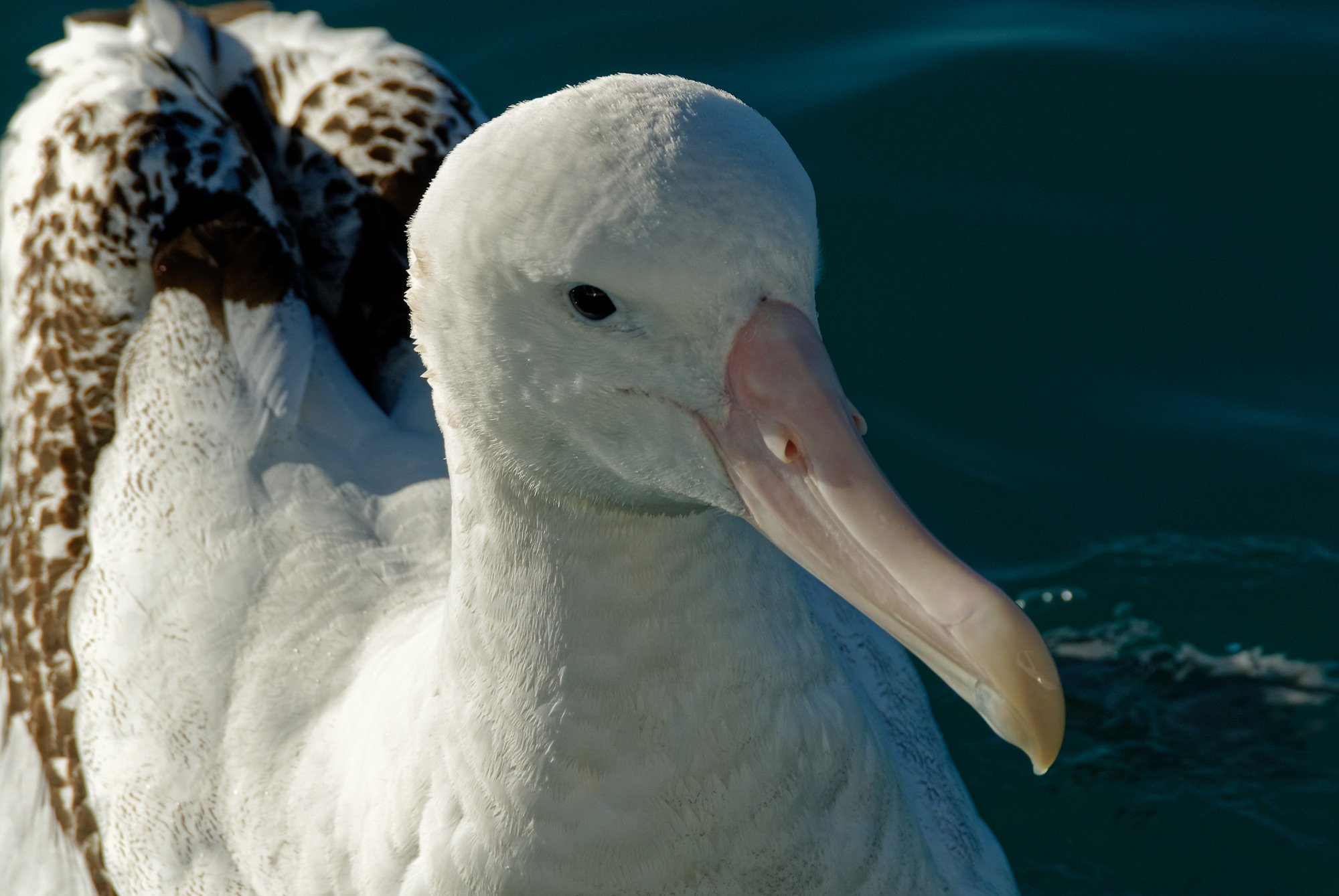 See that little hole on the Great Albatross’s beak? Well, birds in the order Procellariiformes—albatrosses, petrels, shearwaters—are commonly known as tubenoses because of that curious little characteristic. These external nostrils on their bills is what gives them incredible senses of smell. Tubenoses can locate their nest burrows by scent and are even able to detect a whiff of plankton while on the wing. Plus these birds all drink saltwater and excrete the salt through the tubes. This is what largely enables Procellariiformes to spend the vast majority of their lives out at sea. One downside: because they rarely come to land, they are pretty awkward walkers.