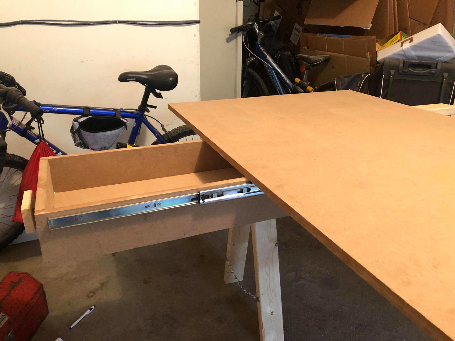 Reusing those leftovers meant I could install a drawer under my work area, giving me space to store various tools and supplies without piling them on top where I work. A handy addition, as extra storage is always welcome.