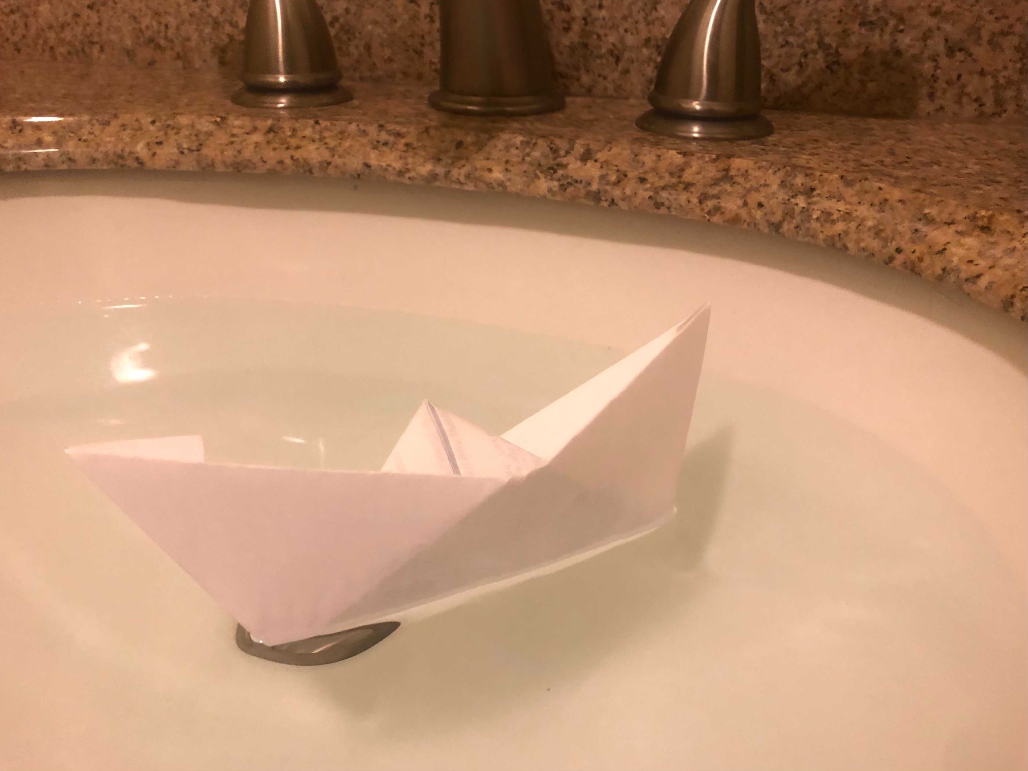 We suggest setting out in the sink or tub, but you can take the little ship outside if you want. Just don’t send it off down the street during a torrential downpour. Storm drains are no laughing matter. Even if we all do float down there.
