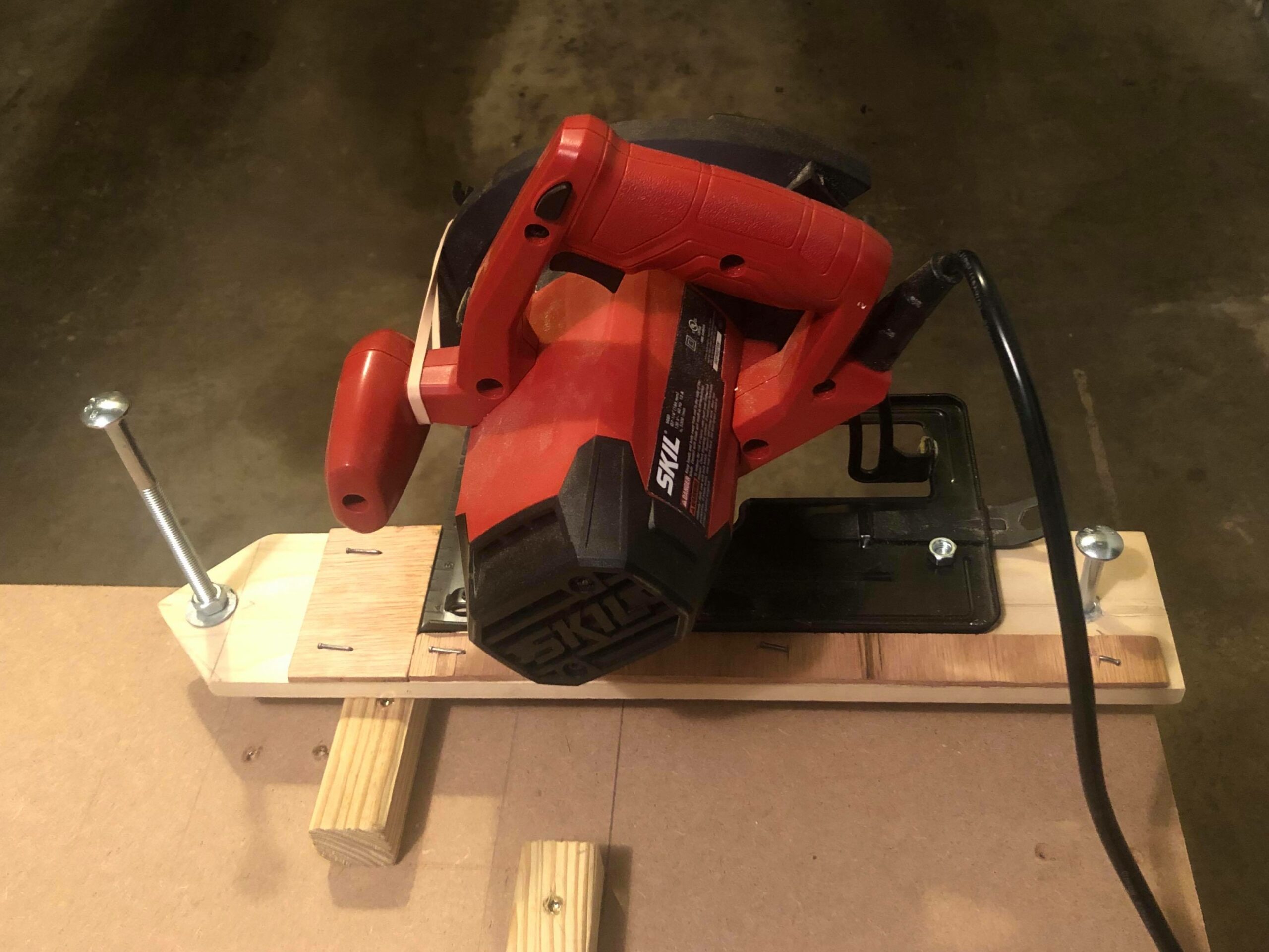 Strapping a skill saw into a wooden jig can be useful for slicing up a lot of similar-sized boards, or when you tire of putting your sidewinder down and picking it up between cuts. This jig is adjustable, too, so you’ll be able to set its height for planks of different thicknesses. And if you need to work somewhere else, simply pop the saw off and be free.