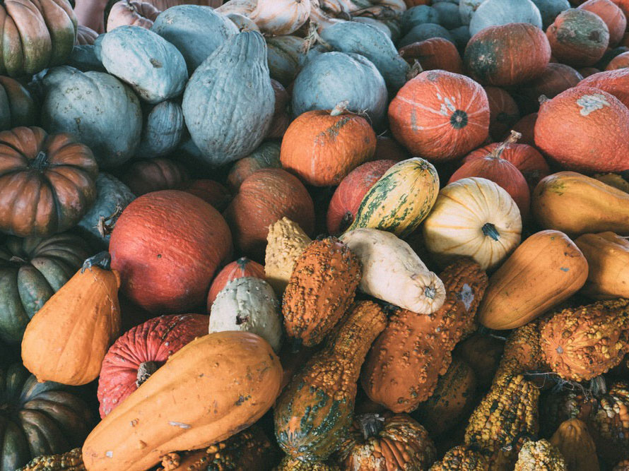 Make sure to consider what is in season, too. Many holiday recipes already call for in-season ingredients, like sweet potatoes, squash, kale, and brussel sprouts. Prioritize ones grown locally, as opposed to ingredients that had to travel long distances to get to your grocery store. Better yet, get to a local farmers market and take advantage of heirloom varieties, like blue potatoes or hubbard squash, swapping them out for mainstream grocery store produce.