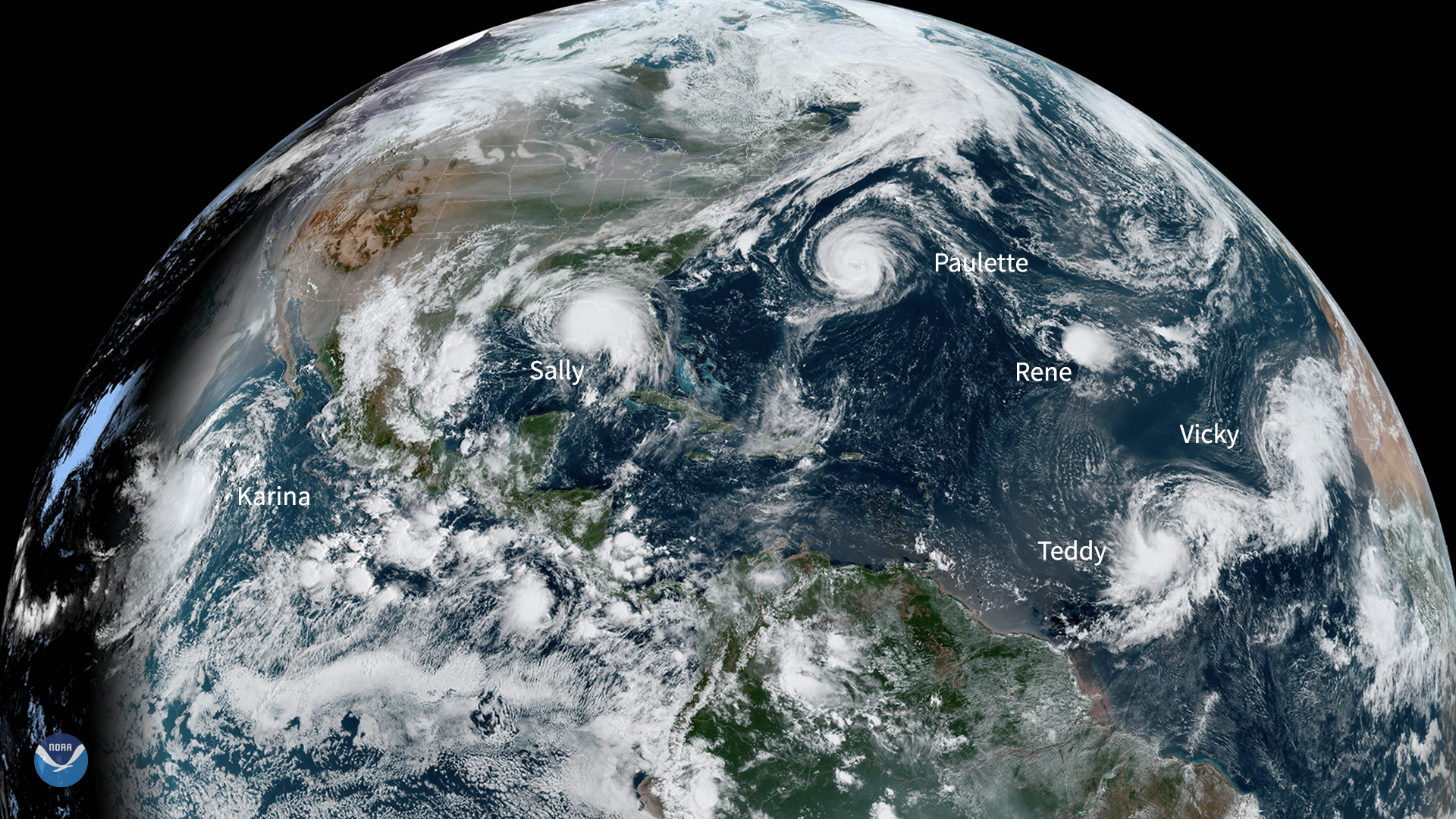 Hurricane Paulette made landfall in Bermuda On Monday, and will likely peter out over the open ocean in the coming days. Tropical storms Teddy and Vicky are still out in the middle of the Atlantic. Teddy is likely to strengthen as it heads towards Bermuda, while Vicky is expected to dissipate by the end of the week. There’s also a tropical depression and an area to watch off the western coast of Africa.