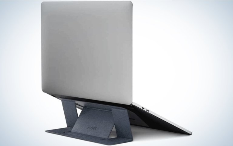 Amazon Basics’ Aluminum Portable Laptop Stand lives up to its name, but in this case, basic doesn’t mean bad. Its kickstand flips out from the bottom to position your laptop at an 18-degree angle while lifting it by roughly three inches. When you’re not using it, the kickstand can be retracted to save space. Layers of rubber on the front and back of this stand will prevent it from shifting around on your desk while you’re using it. This is especially important with an angled stand since you’ll likely be using your laptop’s keyboard with it.