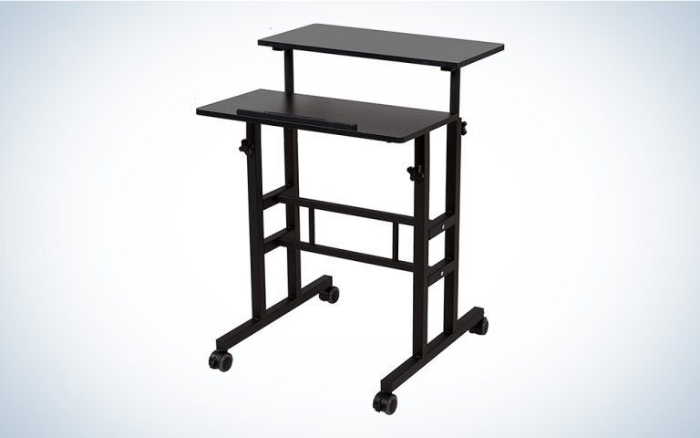 Why it made the cut: Easily assembled and moved around, this wheeled adjustable desk fits whether you stand or sit.
