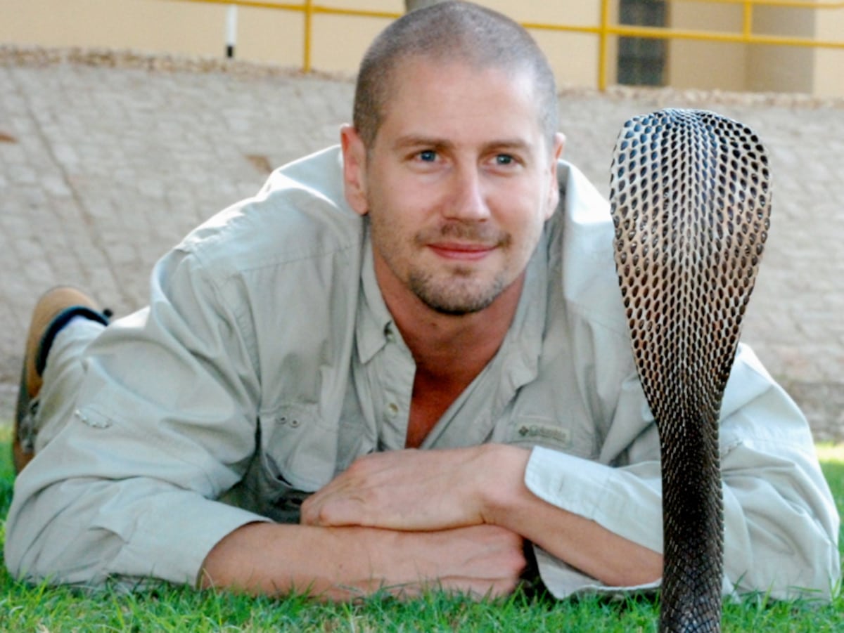 “Whenever I work with these animals now, I look like I’m going into the Hurt Locker,” he says, referencing the Oscar-winning movie about U.S. Army specialists who defused bombs in Iraq. “So, of course, in the tropical sun I’m absolutely melting.” Those limitations, he says, have made working with snakes less enjoyable. “I can’t just blithely interact with these animals that I find so absolutely fascinating, knowing that death is just around the corner at any given moment, even from a snake that normally wouldn’t be a medical problem.”