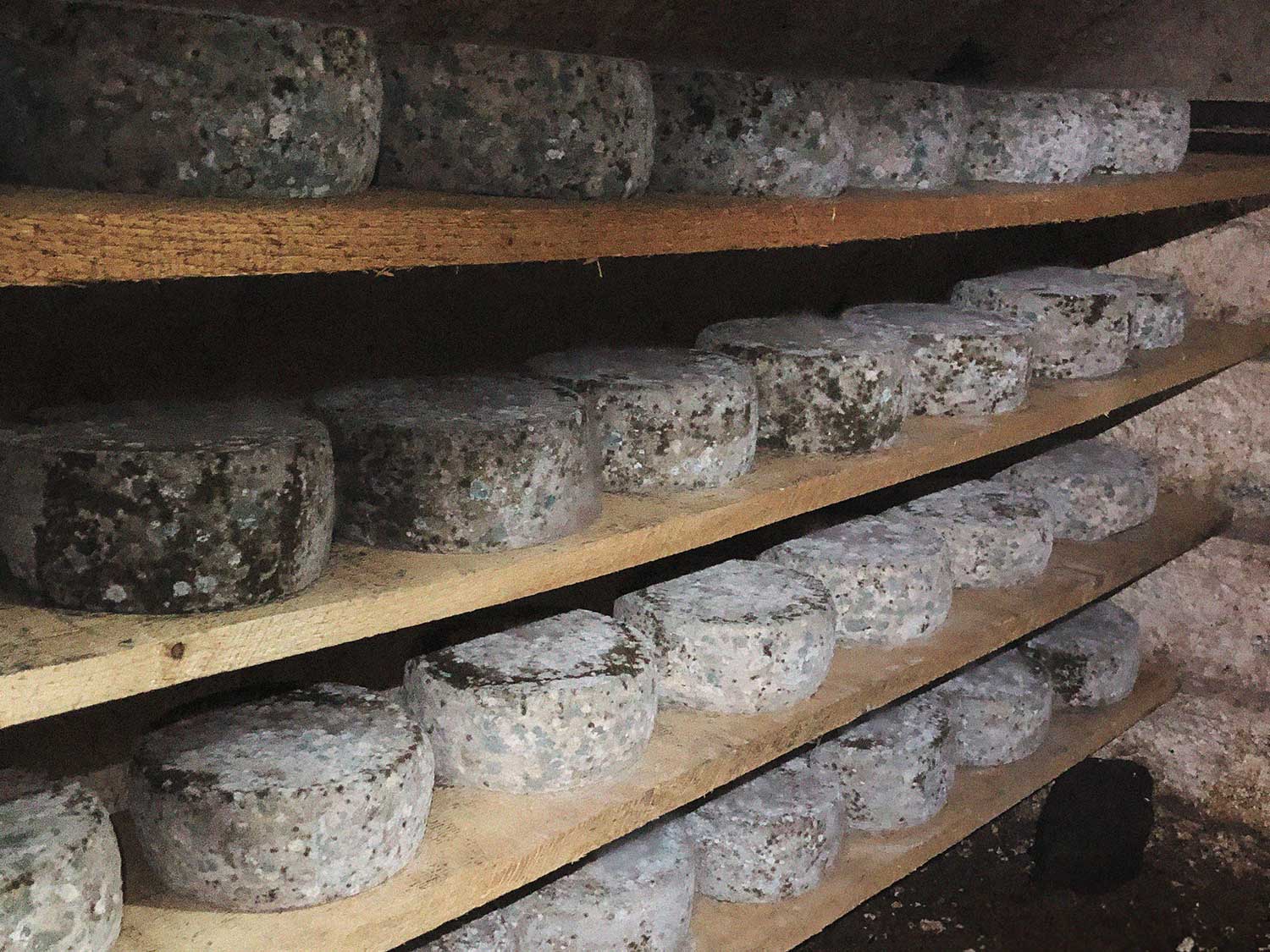 Ricardou, eager to entertain his school-age children, leapt at the opportunity to age the cheese. He added fresh limewash to the cave’s walls and ceiling, and installed shelves of untreated Alpine spruce, before welcoming 37 two-kilo wheels of tomme. Every few days, the architect and his offspring flipped the wheels and wiped down the mold that would eventually form their rinds, occasionally adjusting the cave’s humidity levels by pouring buckets of cold mountain spring water over the mud floor.