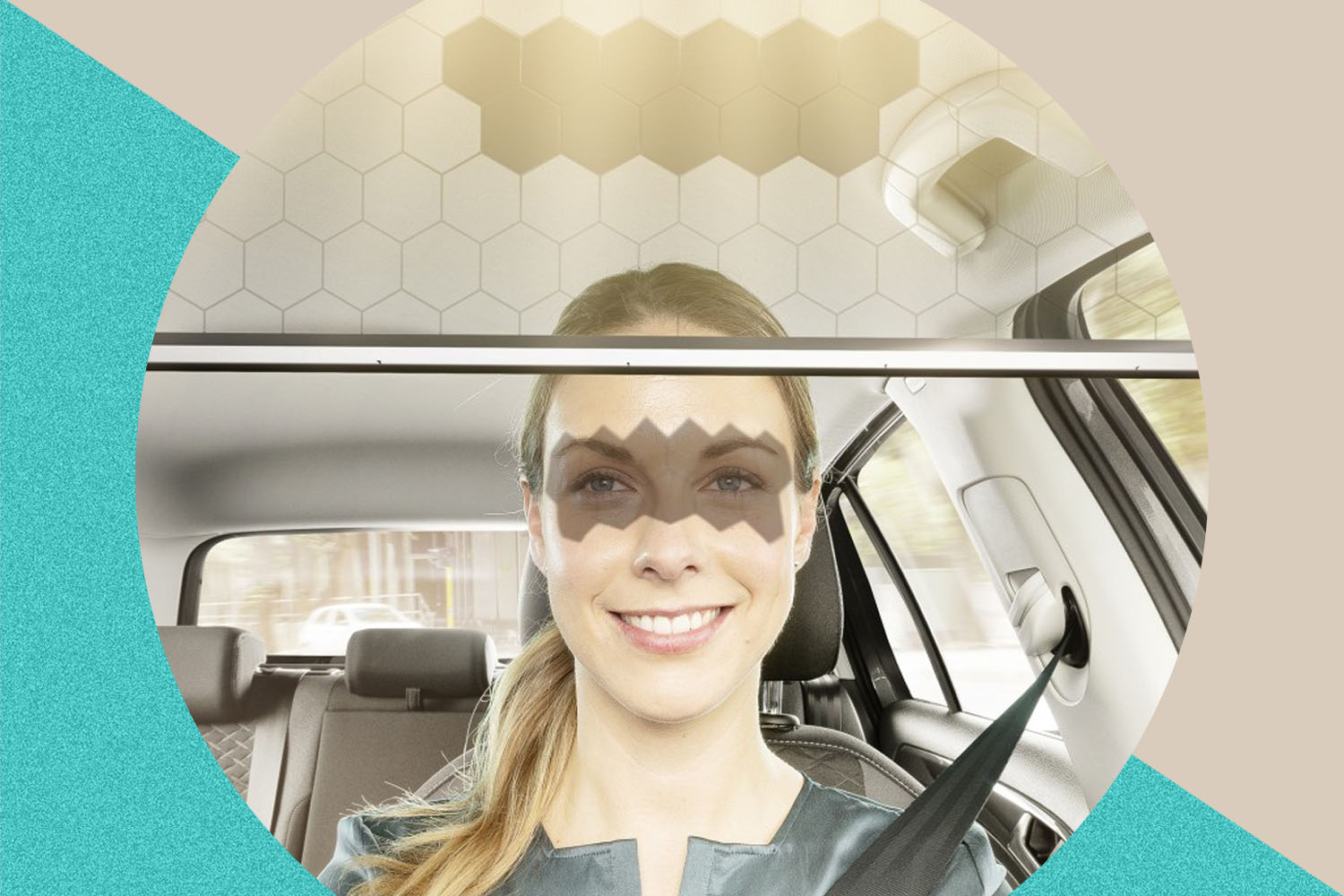 Pull-down sun visors can block huge chunks of the view through your windshield as you drive. Bosch’s improved version keeps the same basic shape but uses a transparent, tintable LCD instead of the opaque flap we’ve tucked sunglasses and keys into for decades. A camera monitors the driver’s gaze as well as incoming light; it then signals the honeycombed display grid to selectively darken just enough to block glare. When the sun tucks behind a cloud or starts to set, flip the visor back up, just like you would in any car.