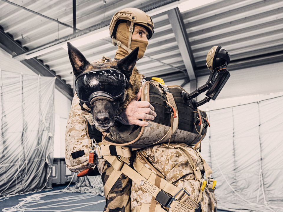 Military dogs and their handlers play vital roles, particularly in covert operations. But when these missions occur miles away from base and the humans parachute in, how do you get the dog there too?