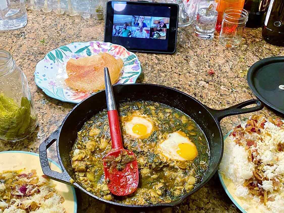 Sunday afternoon on the internet, League of Kitchens instructor extraordinaire Mab Abbasgholizadeh was teaching us how to make baghali ghatogh—a Persian dish of beans, eggs, and dill—over Zoom. Problem is, we all had different kinds of beans. Instead of the dried favas listed in the recipe shared by the multicultural cooking school, my six classmates and I were making do with an array of great northerns and cannelinis, each cooking at their own rate. (What is cooking this year if not a minefield of substitutions?) Mab, undeterred, asked us to present our beans to our laptop cameras and give them a squeeze. “Yours are almost there,” she said to one student while squinting at her screen. “These will need some more time.” It was surprisingly intimate, us squeezing our beans for Mab’s approval, separated by hundreds of miles yet simultaneously inhabiting the same virtual kitchen. I could only grin.