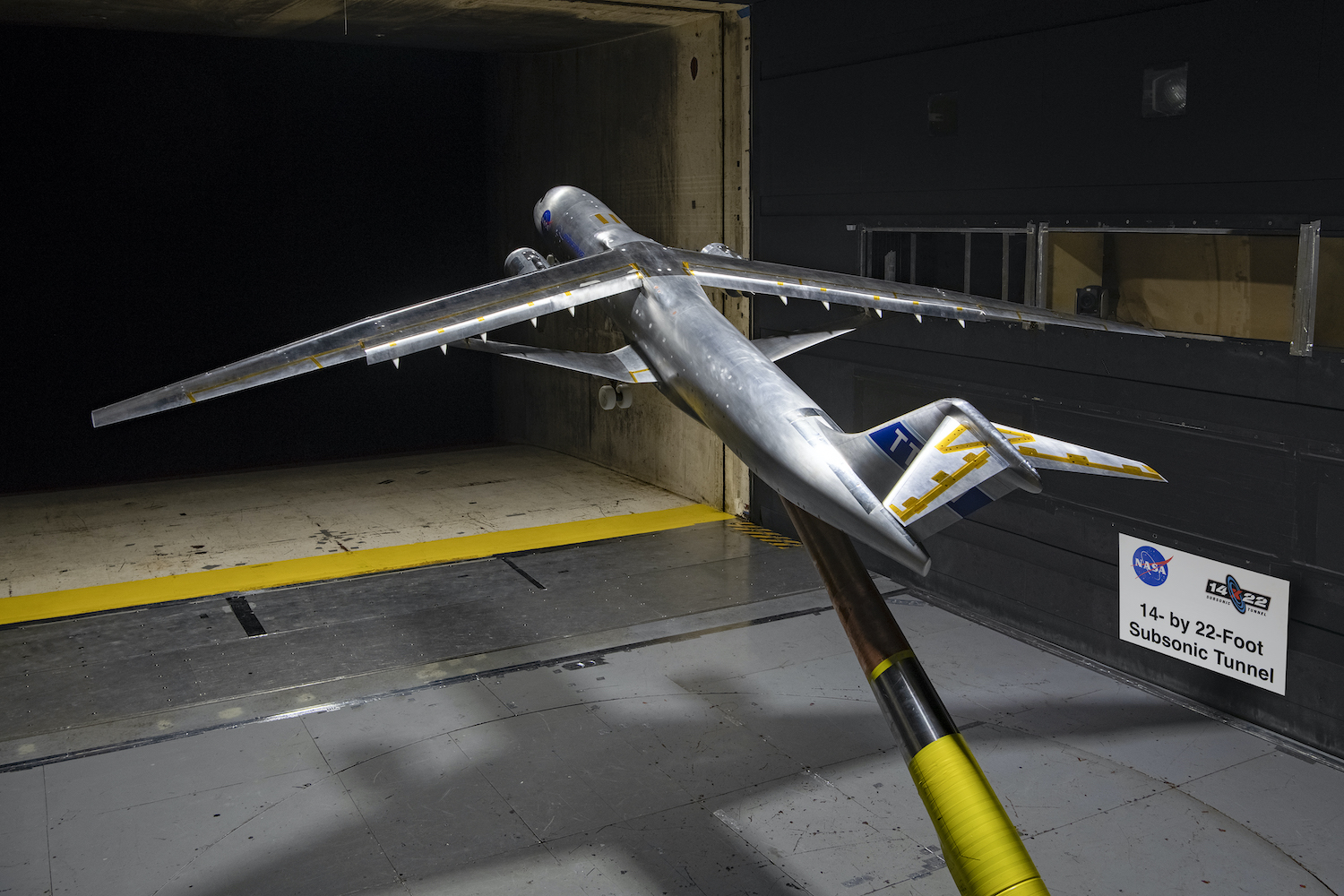 But since 2008, NASA and Boeing have been researching a fascinating wing design that’s more suited for smaller commercial planes, like 737s or A320s, which seat a maximum of about 220 or 240 people. And the wing shape looks different from anything you’ve flown in before. The long, slender wings of the novel design promise to create less drag—like with the 777x, the resulting fuel savings is the whole point—but added trusses below the wings support their long span. NASA has tested different versions of the design in wind tunnels in California and Virginia, and the most recent tests were at a wind tunnel at its Langley Research Center in the fall of last year.