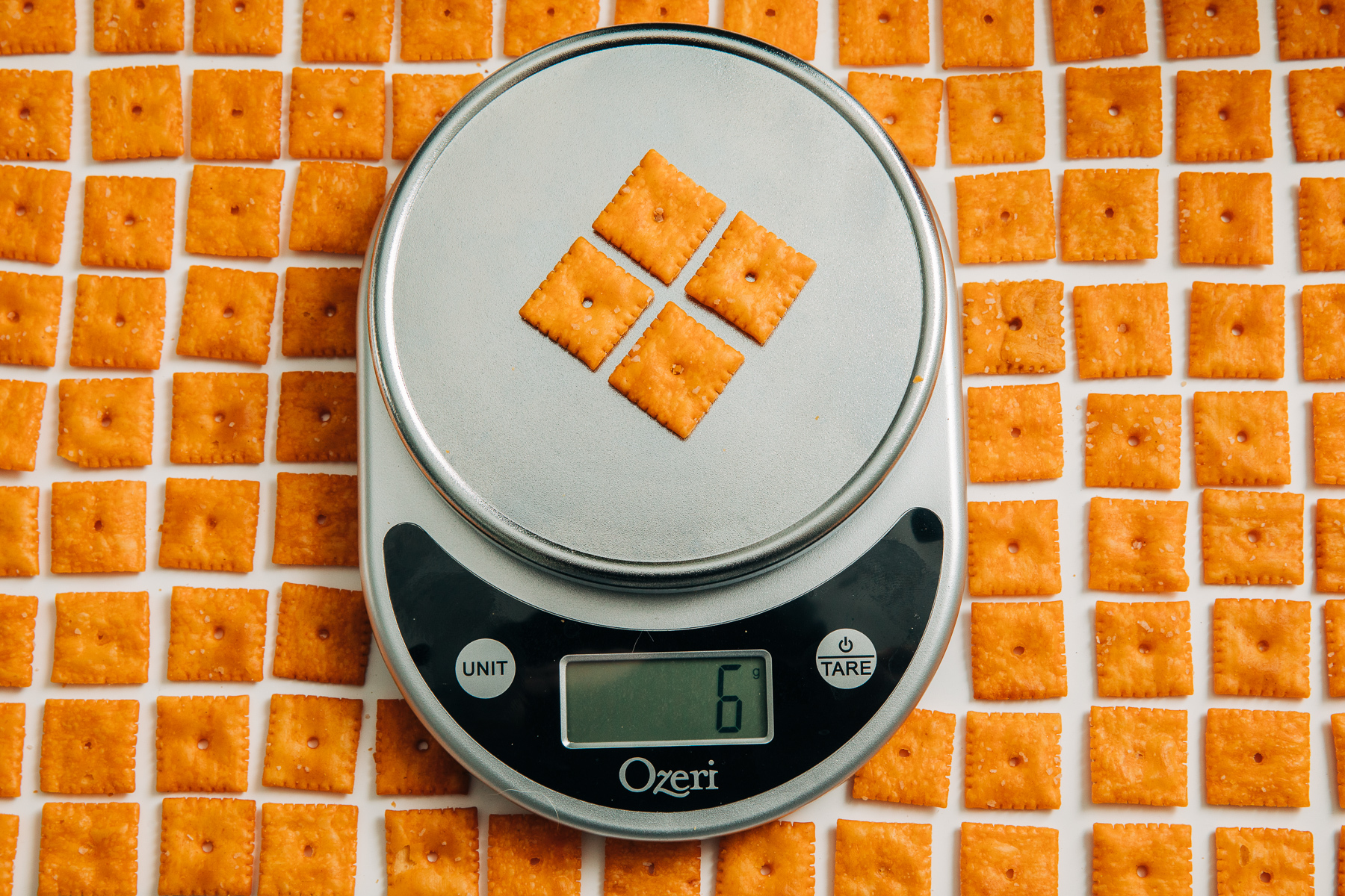 The nutrition panel on a bag of Tostitos says a proper serving is seven chips—six if you go for the Hint of Lime. It sounds pathetic—that’s not enough to get you through the cold open of an episode of The Office. That serving size comes with a number, however: 28 grams, which equals one ounce. In other words, if you don’t want to count your chips, weighing them can help.