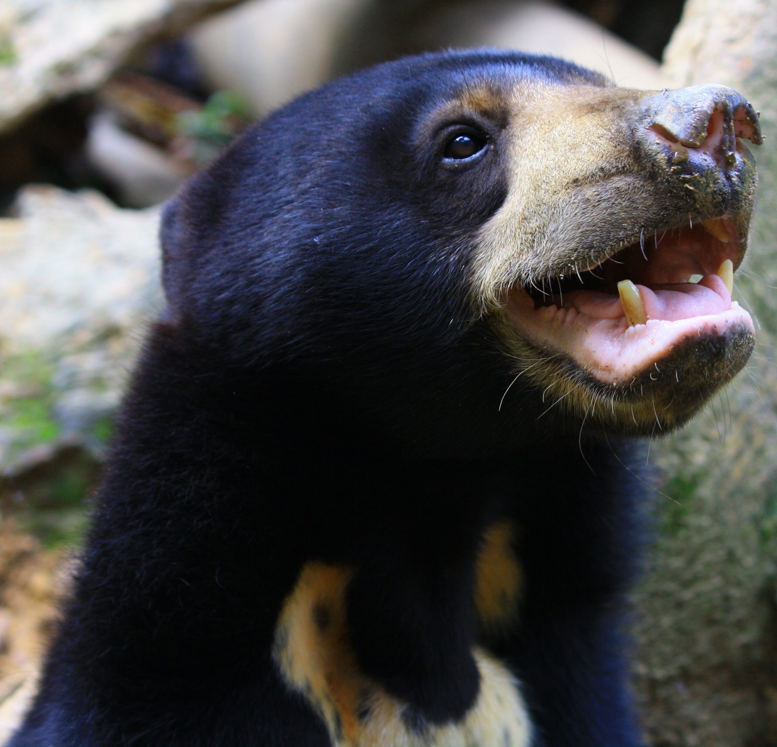 Previously, their claim to fame was the golden semicircle of fur on their chests. Many thought the marking—which is unique to each bear, like a fingerprint—looked like the rising sun, earning the ursine icon it’s common name. With sharp claws and a cartoonishly long tongue, sun bears dig into tree bark, termite mounds, and beehives in search of snacks. (To the dismay of farmers, they also enjoy the occasional coconut or banana.) They’re unbearably cute, but they’re not what you think of when you conjure an image of a socially intelligent animal.
