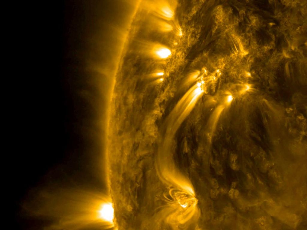 The action goes down in the sun’s chromosphere, which starts where the photosphere (the part that will blind you) ends, and extends to the corona (the wispy atmosphere visible during an eclipse). Exactly how this transition zone works remains unknown, however, with the temperature inexplicably rising from a cool 10,000 degrees F to a sizzling few million degrees over the course of just thousands of miles.