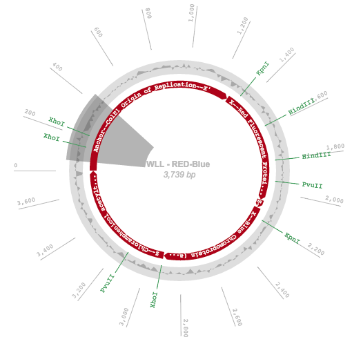 Finally, we added on our DNA cap, which connected the two open ends of the DNA strand. The resulting circle of genetic code is called a plasmid, and this was the information we needed to reprogram the E. coli. Pahara inserted our plasmid into the bacteria and voila: what will soon become very purple-fluorescent cells.