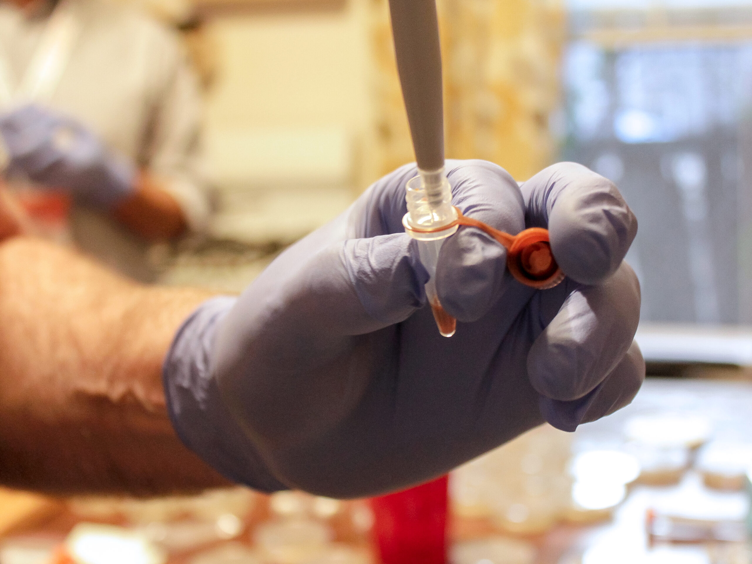 With a beer in hand, we all began with an anchor DNA–the first link in the sequence. We delicately pipetted the genetic material into a tiny plastic cap and washed it, bathing the DNA in water to remove contaminants. The rest of the process was simple. We added the next DNA sequence along with a ligase, an enzyme that helps the strands “stick” together. Each time we added a new link, we bathed the material and repeated the process.