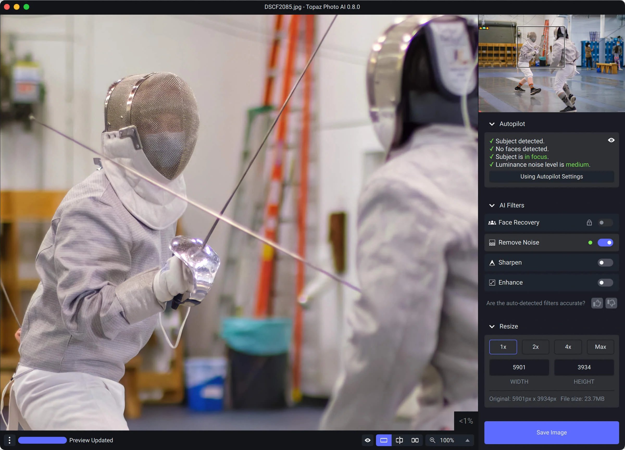 Topaz is currently working on a new app, Photo AI, that rolls those tools into a single interface. Its Autopilot feature looks for subjects, corrects noise, and applies sharpening in one place, with controls for adjusting those parameters. The app is currently available as a beta for owners of the Image Quality bundle with an active Photo Upgrade plan.